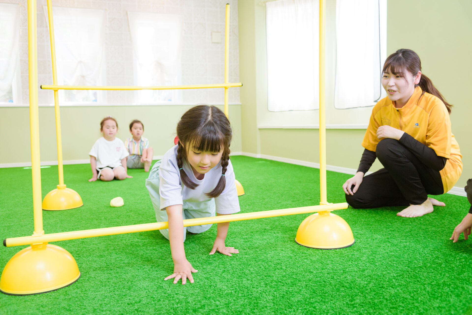 A3. 体幹やバランス感覚を育てる運動、リズム遊び、ボール遊びなどが中心です。遊びながら神経や感覚を刺激し、自然に走り方や姿勢を整えていきます。